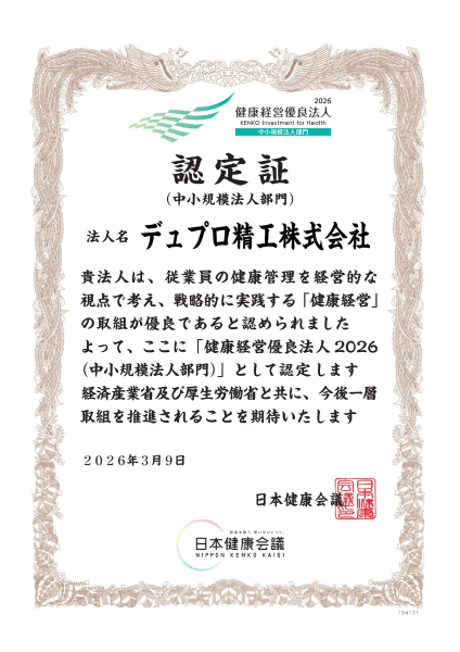 デュプロ精工は、社員が心身ともに健康で充実した生活を送るとともに、