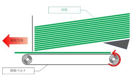 最下部の用紙を給紙する方式です。 吸盤(サッカー)で用紙を吸い上げて給紙する方式。