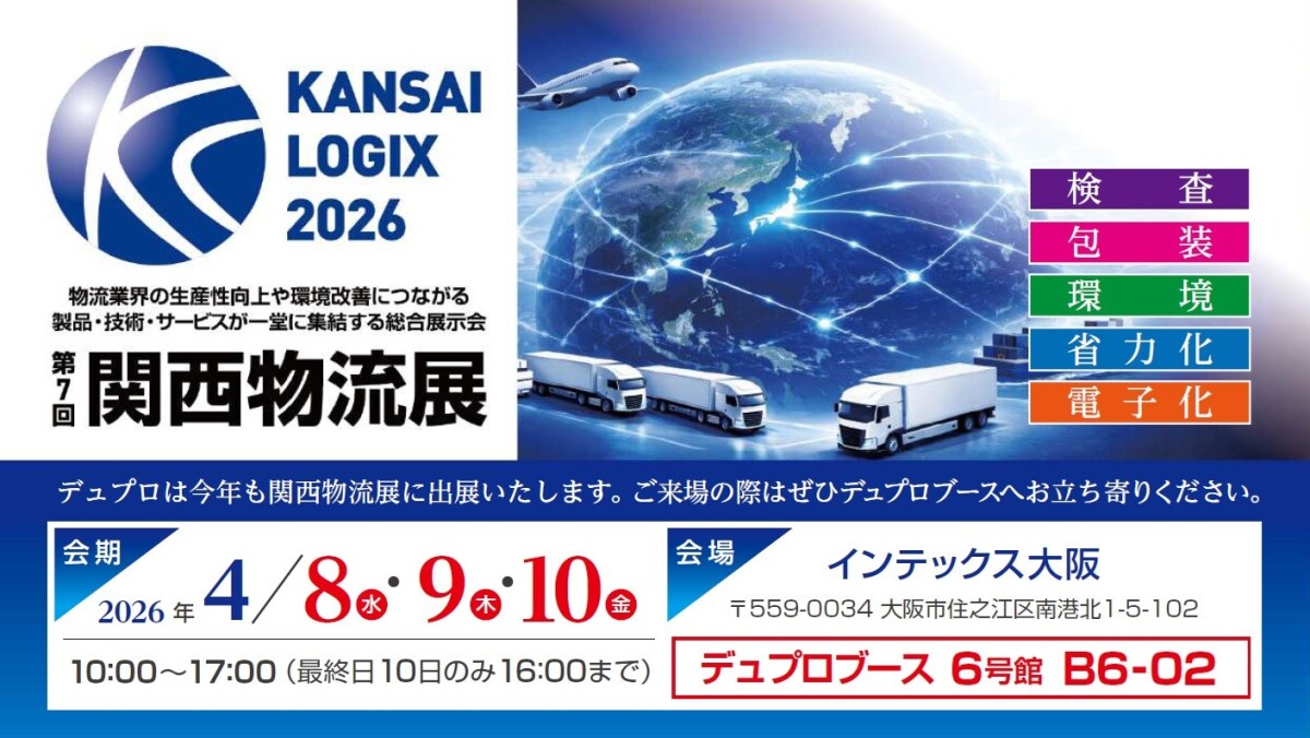 「生産性向上」、「環境改善」を核に物流業界の未来を切り拓く総合展示会として、毎年4月に開催される「第7回 関西物流展」に、今年もデュプロが出展いたします。